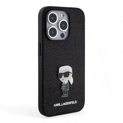 Estuche karl lagerfeld hard case iphone 15 pro  - pc/tpu black hard case ikonik fixed glitter ikonik logo metal pin color negro