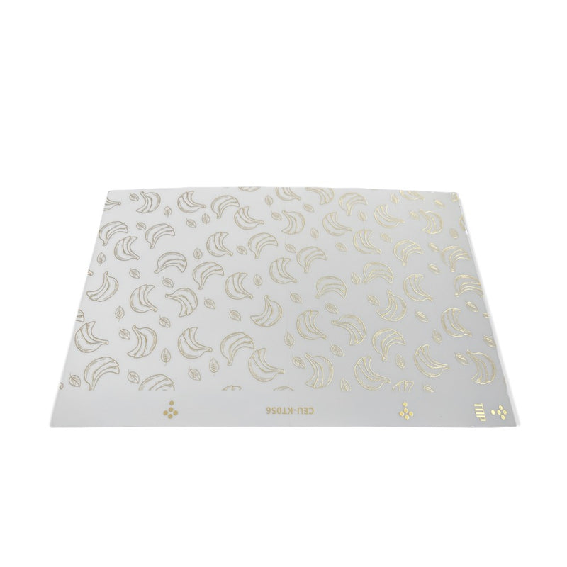 • Acabado dorado con patrón de hojas de banano que aporta un look elegante y distintivo a cualquier superficie.